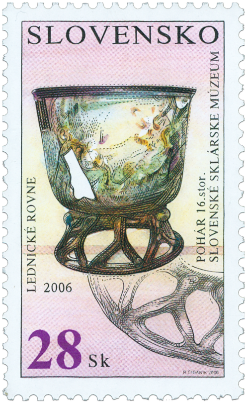© Slovenská pošta, a.s., 2006 Sklársku výrobu na Slovensku v renesančnom období výrazne ovplyvňovali veľké sklárske centrá. Po príchode neapolských Anjouovcov na uhorský trón /1301-1386/ to boli hlavne benátske dielne. Prví benátski sklári sa k nám prisťahovali pravdepodobne až začiatkom 15. storočia. O ich prítomnosti na východnom Slovensku svedčí obec Venecia spomínaná v roku 1410. Talianska renesancia sa udomácnila v prostredí kráľovského dvora, šľachty a bohatých mešťanov predovšetkým v období vlády Mateja Korvína / 1458-1490/. Je známe, že v 16. a 17. storočí sa bežne objednávali a dovážali poháre a čaše priamo z Benátok. Okrem charakteristických pohárov na profilovaných stopkách s...