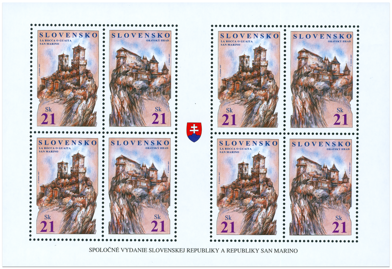 © Slovenská pošta, a . s., 2007 Hradná vyvýšenina, na ktorej sa vypína kamenná dominanta oravského regiónu, bola osídlená už v dobe predhistorickej. V mladšom halštatskom období dochádza postupne k budovaniu osád s valovým opevnením, pričom takéto sídlisko vzniklo i v Oravskom Podzámku na hradnom kopci a stalo sa určitým základom budúceho hradu. Prvá písomná zmienka o Oravskom hrade pochádza z roku 1267, kedy hrad získal do držby vtedajší panovník Belo IV. Súčasná podoba hradného komplexu vznikla postupným budovaním a prestavbami obranných, obytných a hospodárskych stavieb v priestore Horného, Stredného a Dolného hradu od 13. do 20. storočia. Každá časť je...