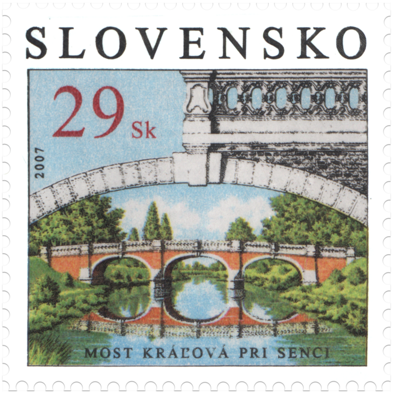 © Slovenská pošta, a .s., 2007 Most cez rieku Čierna Voda, na komunikácii Krmeš - Kráľová postavili v r. 1904. Predstavuje typ mosta s kamenným skeletom, po bokoch vyplnený pálenou tehlou, s umelecky spracovaným kamenným zábradlím v tvare balustrády. Most mal svojho kamenného predchodcu z 18. storočia. Talianski stavitelia a kamenári použili na jeho výstavbu pôvodný barokový materiál predovšetkým kamennú balustrádu. Z výtvarného a technického hľadiska je balustráda totožná s oplotením medzi farou a jej susedným domom. Most má barokové a secesné prvky, ale jeho slohové určenie najlepšie vyjadruje neobaroko. Do roku 1900 stál poniže kaštieľa aj drevený most. Most je...