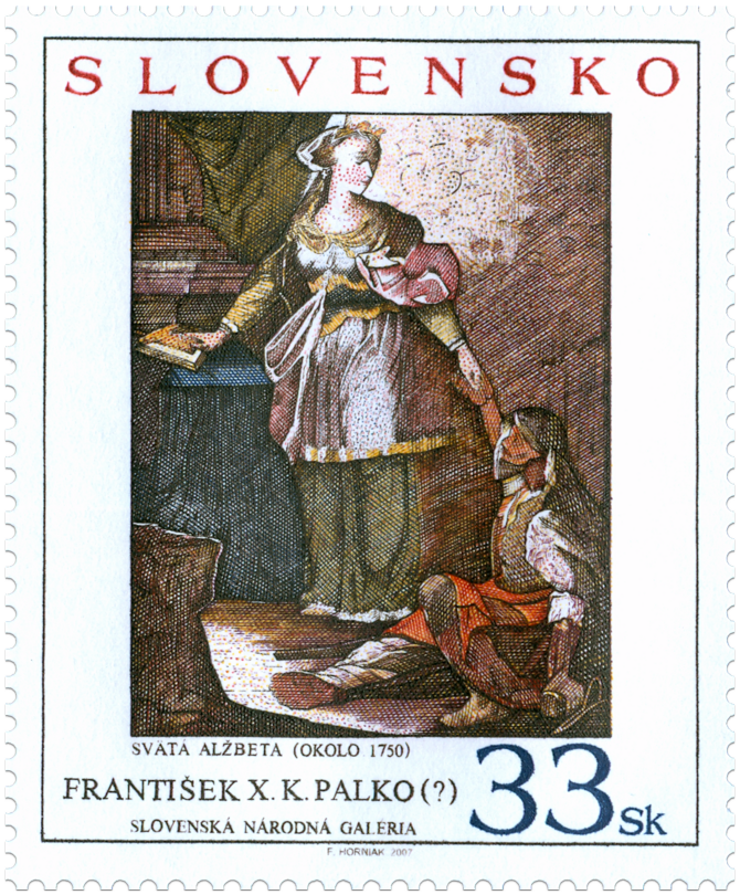 © Slovenská pošta, a .s., 2007 Umenie baroka bolo aj na našom dnešnom území v mnohom úzko previazané s opätovným rozkvetom kultu svätých. Potridentská ikonografia priniesla so sebou novokanonizovaných svätcov a cielene oživovala celú plejádu najrôznejších stredovekých svätých patrónov a ochrancov. Medzi nich sa radí aj v Bratislave narodená dcéra uhorského kráľa Ondreja II. Alžbeta Uhorská (* 1207). Označovaná tiež býva aj ako Alžbeta Durínska, podľa svojho manžela durínskeho grófa Ľudovíta IV. Po jeho smrti v roku 1227 sa vzdala majetku a dobrovoľne žila v chudobe vo františkánskom kláštore v Marburgu, kde sa venovala opatere chorých. Tam aj v novembri 1231...