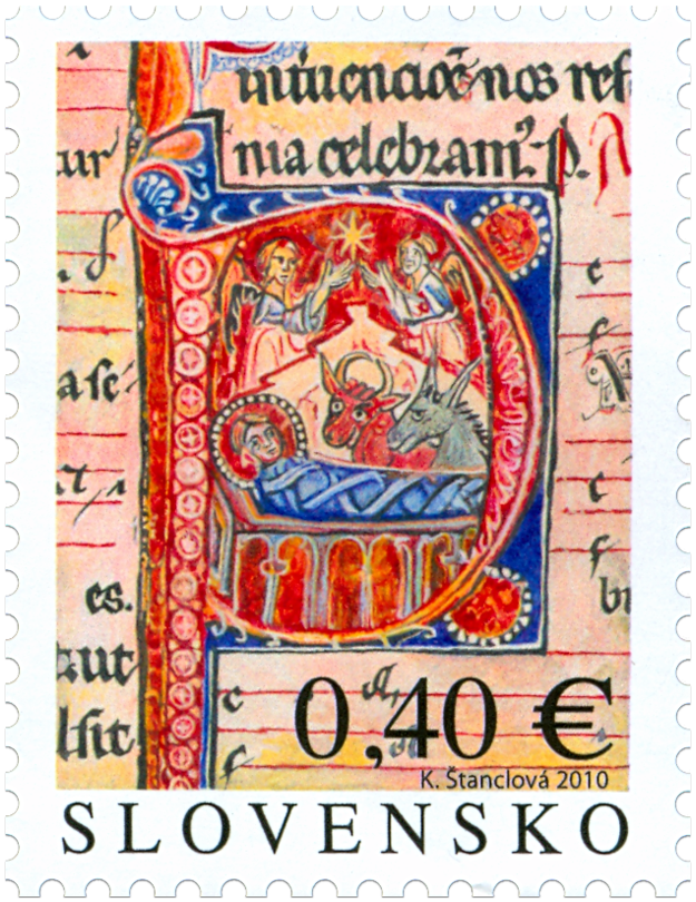 Liturgický rukopis Bratislavského misála I zo začiatku 14. storočia ostal zachovaný v niekoľkých fragmentoch v Archíve mesta Bratislavy, v Mestskom múzeu v Bratislave a v Spolku sv. Vojtecha v Trnave. Pôvodne mal 366 listov, dnes ich je dohromady 303. Na niektorých z týchto pergamenových listov kódexu (fólií) sú namaľované figurálne iluminácie, zväčša vo forme iniciál s biblickou tematikou. Jedným z týchto obrazov, na fóliu v Mestskom múzeu, je iniciála Narodenia Pána. Scéna je umiestnená do písmena P – iniciály textu Puer natus est... (Narodil sa chlapec). Jednoduchá notácia nad textom prezrádza, že ide o vianočnú pieseň, integrovanú do liturgického kódexu. Dominuje...