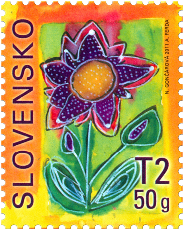 Výtvarná predloha poštovej známky vzišla z celoslovenskej výtvarnej súťaže profesora Karola Ondreičku MESIAC DETSKEJ TVORBY. Tému NAKRESLÍM SI KVETINOVÚ DETSKÚ ZNÁMKU navrhol do súťaže Mgr. Martin Vančo, PhD. Celoslovenská výtvarná súťaž je určená telesne a mentálne hendikepovaným deťom bez ohľadu na vek. Prvým predsedom a spoluzakladateľom súťaže bol popredný slovenský výtvarník, profesor Karol Ondreička. Po jeho tragickom úmrtí funkciu predsedu prevzal a dodnes vykonáva profesor Dušan Kállay. V roku 2010 sa celoslovenskej výtvarnej súťaže zúčastnilo takmer 400 špeciálnych a integrovaných základných škôl, detských domovov, sociálnych a reedukačných zariadení piatimi tisíckami prác detí. Za dvanásť rokov existencie súťaže, ktorá vznikla pri detskom...