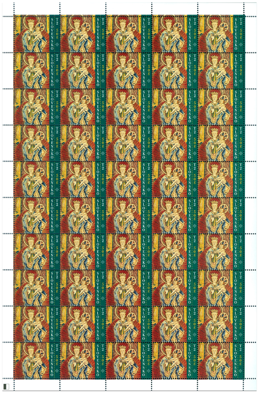 Motív použitý na emisnú známku predstavuje vzácny textilný artefakt používaný na liturgické obrady v rímskokatolíckej cirkvi – kazulu, čiže vrchný liturgický odev určený pre kňaza slúžiaceho obrad bohoslužby. Pochádza z majetku Spišského rímskokatolíckeho biskupstva v Spišskom Podhradí a bol vyrobený približne okolo polovice 15. storočia. Kazula reprezentuje vzácny príklad používania luxusných talianskych hodvábnych zamatov na území Slovenska, v tomto prípade strihaného a razeného zamatu pretkávaného kovovými niťami. Kazula je mimoriadna aj dorzálnym vyšitým krížom. Napriek redukcii je výšivka vzácnym dokladom použitia techniky maľby ihlou rozštiepeným stehom. Prítomnosť tohto stehu umožňuje datovať výšivku do polovice 15. storočia. Výšivka mohla byť zhotovená na...