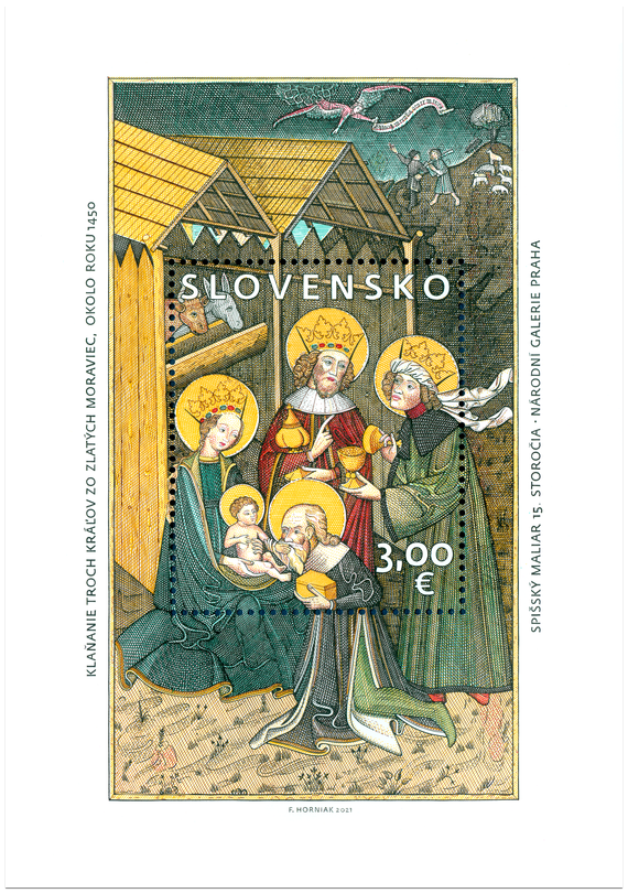 Obraz z pražskej zbierky predstavuje populárny námet Epifánie – Klaňania Troch kráľov (Mt 2, 1-12). Z hľadiska jeho funkcie ide o pôstnu stranu krídla (zatvoreného) oltára. Na pozadí tmavej krajiny so stajňou s oslom a volom, vidno skupinu postáv s Pannou Máriou s Ježišom na kolenách a troma vekom odlíšiteľnými kráľmi. Najstarší z nich, bez koruny na hlave, kľačí a bozkáva Ježišovu ruku. Dvaja mladší navzájom komunikujú, na hlavách majú koruny zvýraznené žltými svätožiarami. Motív klaňania je rozšírený o Zvestovanie pastierom – dvaja z nich sa objavujú na pahorku v pozadí s ovcami, anjel sa im formou textu na...