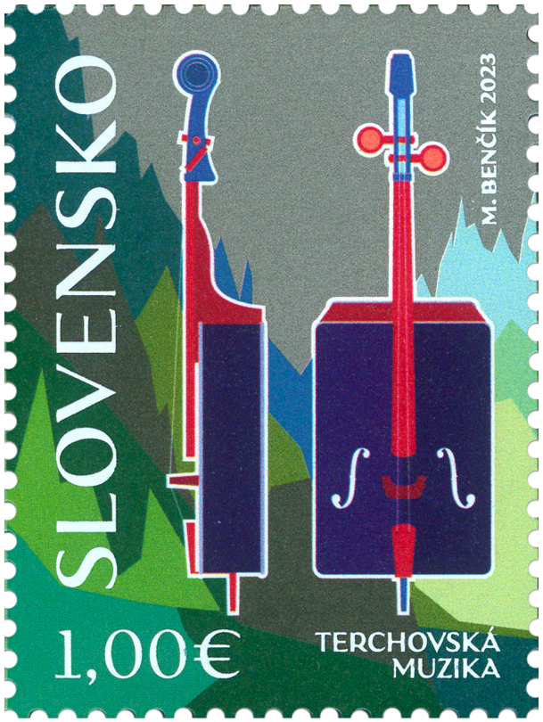 Úryvok ľudovej piesne približuje vzťah obyvateľov terchovskej doliny k ich domácemu hudobnému folklóru. Legenda hovorí, že vraj v Terchovej je najviac muzikantov a spevákov na meter štvorcový, a preto takmer každá osada v Terchovej mala vlastnú kapelu. Emisia poštovej známky „Terchovská muzika“ je poctou všetkým generáciám z tejto lokality, ktoré zachovali poklady predkov pre súčasný svet a ďalej ich rozvíjajú. Terchovská muzika je vrchárska archaická ľudová hudba, ktorá je dodnes živá v oblasti Kysuckej vrchoviny, ale aj všade tam, kde sa po vysťahovaní usadili Terchovčania. Ide o troj-štvorčlenné sláčikové obsadenie s malou dvojstrunovou basou, ktorá je motívom...