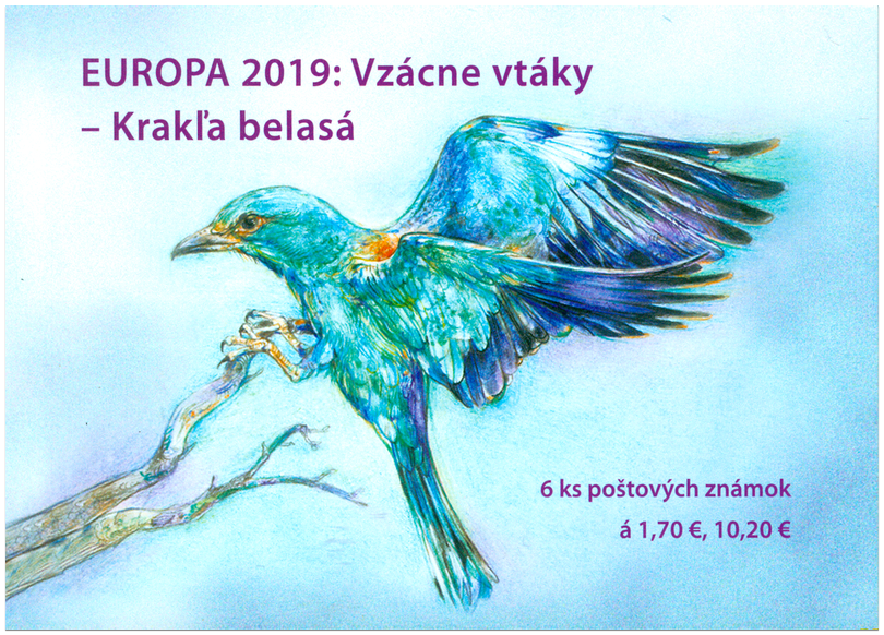 EUROPA 2019: Vzácne vtáky - krakľa belasá Číslo emisie