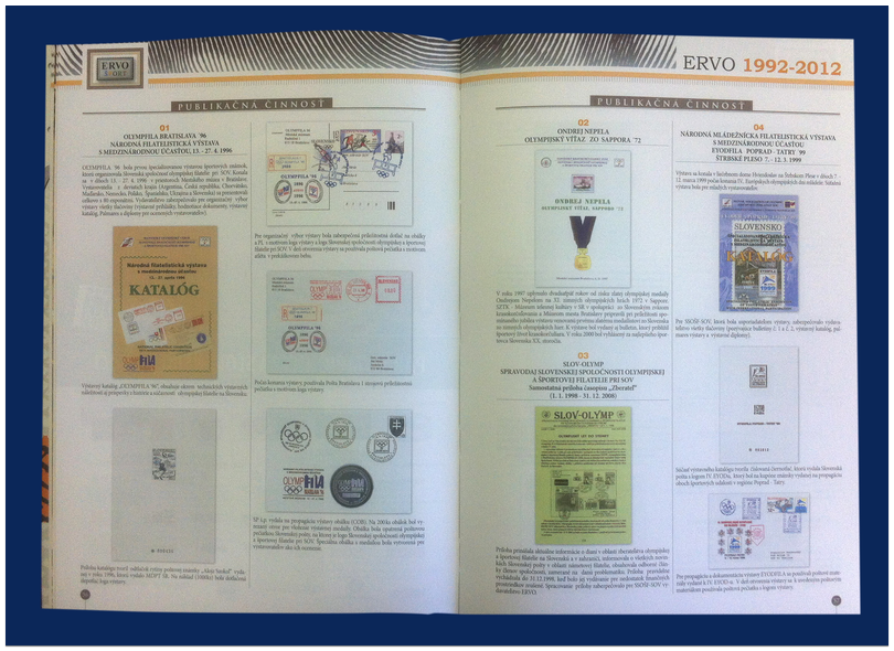 Zbierka poštových materiálov z 20-ročnej produkcie vydavaťeľstva ERVO dokumentuje činnosť vydavateľstva za posledných 20 rokov na poli športovej filatelie.