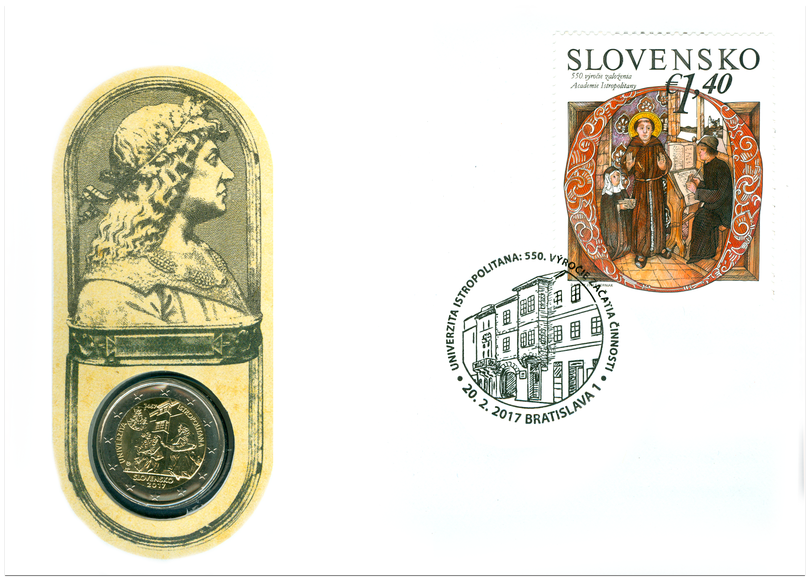 Numizmatická obálka: Univerzita Istropolitana: 550. výročie začatia činnosti
